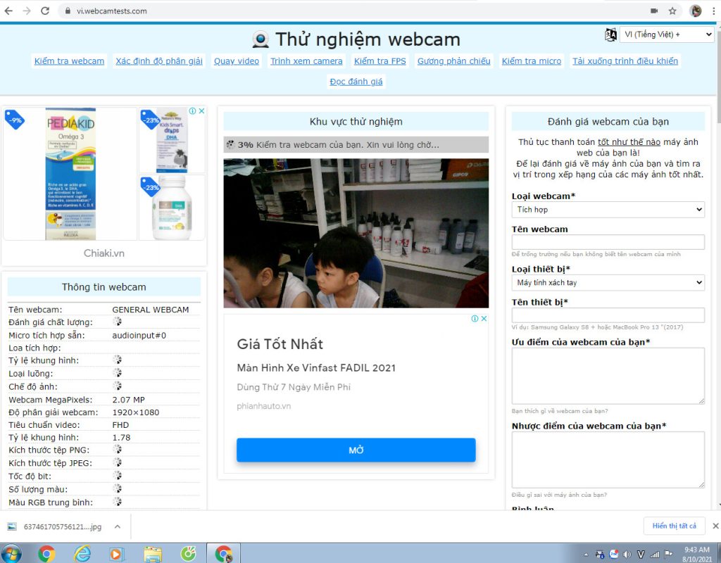 như thế này là chúng ta đã kiểm tra được camera của máy tính