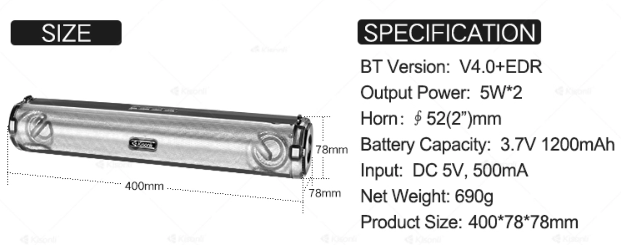 Hỗ trợ : Ko dây Bluetooth USB, FM, Điện thoại di động, TF, Máy tính, MP3 …